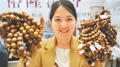 ④ 参展商展示黄花梨手串。海南日报全媒体记者 张茂 摄