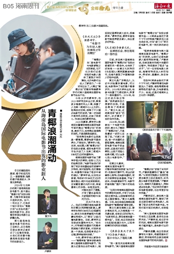 在黄文礼看来,海南岛国际电影节对青年导演的扶持是“全方位”的:在剧本打磨环节,有业内前辈悉心指导;在电影拍摄时,有关方面赞助设备器械,节省了成本;在电影展映环节,电影节的宣传推广提升了影片的知名度。