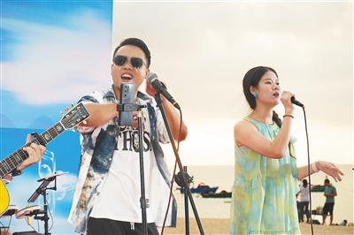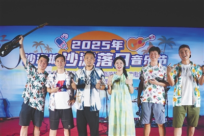 乐队在沙渔塘社区参加沙滩落日音乐节。