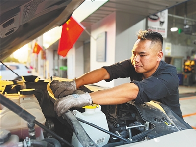 许昌军在修理汽车。