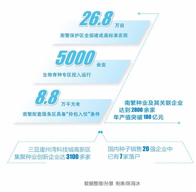 在多方推动下,26.8万亩南繁保护区全部建成高标准农田,5000余亩生物育种专区投入运行,8.8万平方米南繁配套服务区具备“拎包入住”条件,为生物育种研究试验提供有力设施保障。