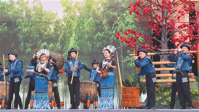 2025年“雨林与您”体验活动主会场演出上的黎族特色乐器合奏。