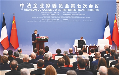 十二月四日中午,国家主席习近平在北京同法国总统马克龙共同出席中法企业家委员会第七次会议闭幕式并致辞。新华社记者 谢环驰 摄