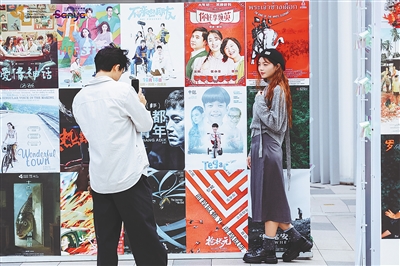 第七届海南岛国际电影节期间,游客在三亚“全城电影片场”打卡。