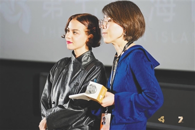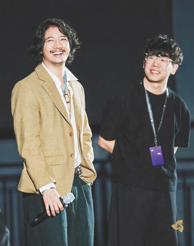 在映后活动上与影迷观众交流。
