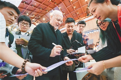 马可·穆勒做客第七届海南岛国际电影节大师班活动,为现场影迷签名。