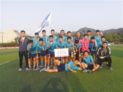 2018年,海中足球队在全国青少年校园足球联赛高中男子组东南赛区的比赛中夺冠后合影。