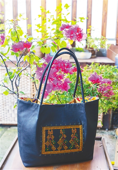 王彬妮设计的黎锦元素包包。