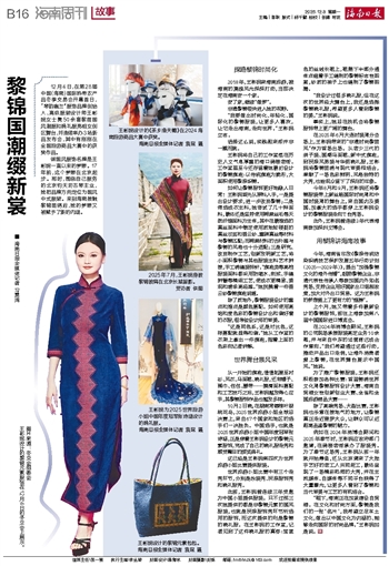 今年,海南省印发《黎族传统纺染织绣技艺保护发展五年行动计划(2025—2029年)》,提出“加强黎锦文化的海外传播”,鼓励黎锦企业、非遗代表性传承人等参加国内外知名秀场,支持企业用好国家出口退税政策,加大对外出口贸易。这为王彬妮的梦想插上了更有力的“翅膀”。