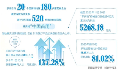 海内外全面布局。国内,已在贵州、山东、浙江、河北、广东等地落地超20个品牌形象空间;不断吸纳外籍医护人员来华执业和学术交流,提供国际化诊疗服务;依托免签入境政策,赴东南亚、中亚等地区开展推介,与印尼、老挝、加拿大等国际知名医疗旅游目的地建立合作关系,逐步实现资源互补和客源共享。今年前10月,乐城接待境内外医疗旅游56.49万人次,同比增长81.02%。
