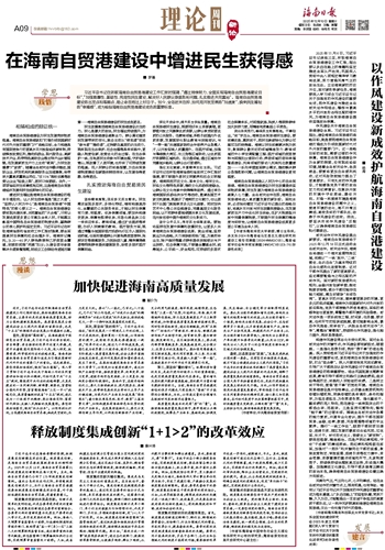 习近平总书记在听取海南自由贸易港建设工作汇报时强调,“通过持续努力,全面实现海南自由贸易港建设目标”,“加强普惠性、基础性、兜底性民生建设,解决好人民群众急难愁盼问题,扎实推进共同富裕”。海南自由贸易港建设的出发点和落脚点,是让老百姓过上好日子。如今,全岛封关在即,如何用开放发展的“加速度”,换来民生福祉的“幸福感”,成为检验海南自由贸易港建设成色的重要标准。