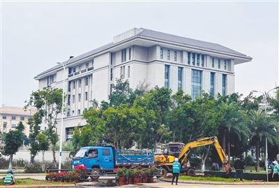 12月11日下午,多名绿化养护工作人员在海口市滨海大道西段有序开展花卉布景作业,将一盆盆色彩鲜艳、错落有致的时令花卉整齐摆放在主路与辅路之间的绿化带中,形成一条绵延的彩色景观带。为迎接12月18日海南自贸港正式启动全岛封关这一重大历史时刻,充分展现海口加快建设自贸港核心引领区的城市魅力、崭新活力与开放形象,海口市城市管理局近期全面启动了全市范围内的鲜花造景与氛围布置工作。截至目前,全市主要点位的摆花造景任务已基本完成,整体工作进入收尾阶段。