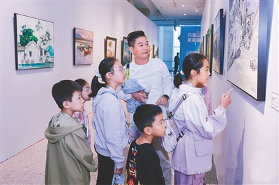游客在海南省博物馆欣赏画作。海南省博物馆供图