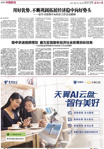 “我国经济长期向好的支撑条件和基本趋势没有改变。”中央经济工作会议强调,“要坚定信心、用好优势、应对挑战,不断巩固拓展经济稳中向好势头。”这是对我国经济形势作出的重大判断,对于做好明年经济工作具有重大指导作用。