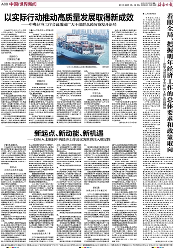 中央经济工作会议日前在北京闭幕,世界再次聚焦中国经济巨轮的前行方向。海外人士认为,此次会议不仅着眼“十五五”开局为中国经济把脉定向,也为世界经济提供稳定预期、创新动能和机遇清单。在充满不确定的世界,国际社会瞩望中国继续担当全球经济增长的重要引擎,为世界注入强大确定性。