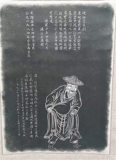 儋州东坡书院石刻《坡仙笠屐图》拓片。