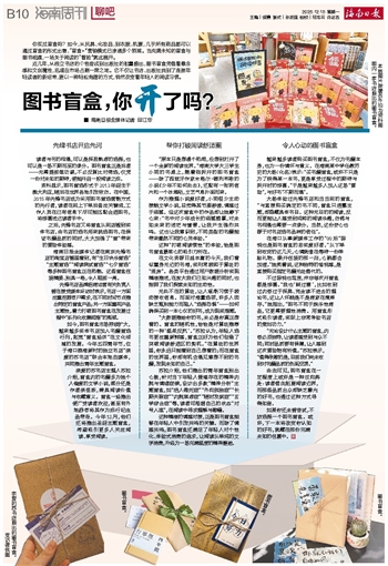 ■ 海南日报全媒体记者 邱江华你买过盲盒吗?如今,从玩具、化妆品,到衣服、机票,几乎所有商品都可以通过盲盒的形式出售,“盲盒+”营销模式已渗透多个领域。当充满未知的盲盒与图书相遇,一场关于阅读的“冒险”就此展开。