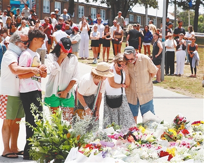 十二月十五日,在澳大利亚悉尼,人们在邦迪滩枪击事件现场附近悼念遇难者。新华社发