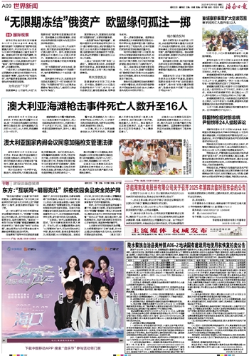 新华社悉尼12月15日电(记者梁有昶 齐紫剑)澳大利亚警方15日说,前一天在悉尼邦迪滩发生的枪击事件已造成包括1名作案嫌疑人在内的16人死亡、40人受伤,两名嫌疑人为一对父子。据新南威尔士州警方最新消息,14人在枪击事件中当场死亡,两人在医院经抢救无效死亡,死者年龄介于10岁至87岁之间。目前,有40名伤者在医院接受治疗,其中5人情况危急。
