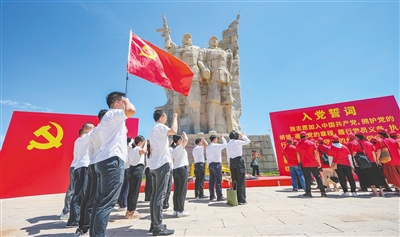 在临高角海南解放公园,有关单位组织党员开展主题党日活动。 海南日报全媒体记者 陈元才 摄