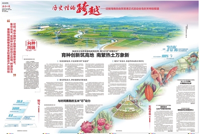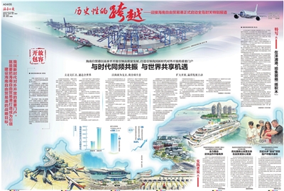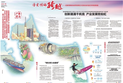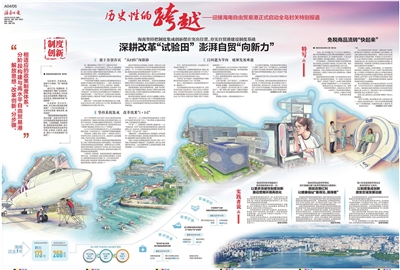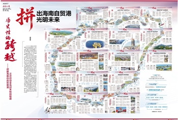 此次报道,既是内容的深耕,也是形式的创新。我们突破常规版式,以一幅海南岛地图为脉络,将17期报道版面精心设计、巧妙串联。每一期独立成篇的手绘插画,细腻定格自贸港建设场景;当它们最终拼合成海南岛地图时,则深刻寓意:无数拼搏奋斗的点滴,正汇聚成自贸港的光明未来。