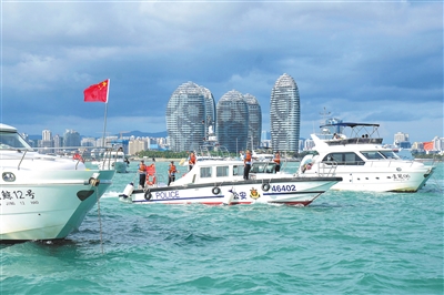 海南公安在三亚湾开展巡逻防控,守护市民游客平安。