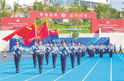 海南警察学院举行首届学生开学典礼暨军训汇报演练。