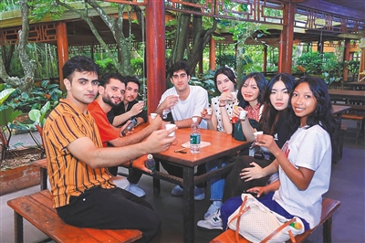 留学生们在兴隆热带植物园品尝香草茶和兴隆咖啡。海报集团全媒体中心记者 潘頔 摄