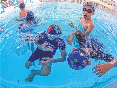 在屯昌县向阳小学的泳池里,学生在练习游泳。海南日报全媒体记者 李天平 摄