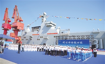 四月二十二日上午,在澄迈县马村港散货码头,海南省为海军海南舰隆重举行欢迎仪式。海南日报全媒体记者 张茂 摄