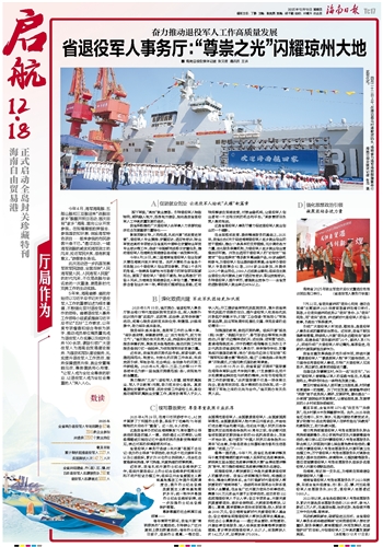 风劲帆满图新志,砥砺奋进正当时。全省退役军人事务系统将继续围绕“切实把退役军人接收安置好、服务保障好、教育管理好、作用发挥好、权益维护好”的目标,开创退役军人工作高质量发展新局面。(本报海口12月17日讯)