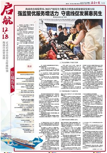 新的历史方位,新的奋斗坐标,呼唤新的进发!以封关为契机,海南省市场监管局、省知识产权局认真落实省委省政府决策部署,牢固树立“站高一位”的大局意识、“向前一步”的主动意识、“守牢安全”的底线意识,紧紧围绕建设“三区一中心”的战略定位,聚焦“五向图强”,强监管、促发展、保安全、惠民生,积极推进改革、有效应对风险,在自贸港建设大局中奋力彰显市场监管担当。