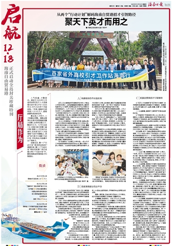 12月18日,海南自贸港全岛封关运作正式启动。面对这一重大历史机遇,海南将在引才、育才、留才、用才上同向发力,不断激发人才作为“第一资源”的无穷活力。(本报海口12月17日讯)