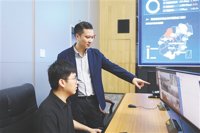 封关服务处吴晓嘉(右)在监测各封关运作信息化系统运行的实时动态。