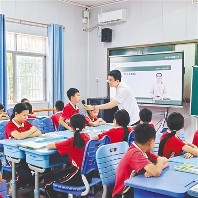 海口市滨海第九小学教师利用国家中小学智慧教育平台资源授课。学校供图