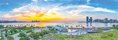 海口深入推进美丽海湾建设,将海口湾作为城市发展的蓝色生态名片,打造出“椰风海韵湾城融通”的美丽海湾景观。海南日报全媒体记者 陈元才 摄