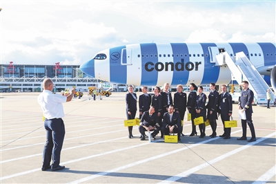 七月二十七日,德国神鹰航空运营的“法兰克福⇌曼谷⇌三亚”第五航权航线首航航班抵达三亚凤凰国际机场。该航线是海南自贸港首条通往欧洲的第五航权定期客运航线。海南日报全媒体记者 王程龙 摄