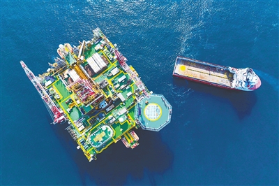 俯瞰停靠在三亚湾锚地的海洋石油982钻井平台。