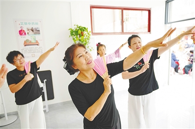 三亚崖州区南滨居老年人日间照料中心,“候鸟”老人在练习舞蹈。海南日报全媒体记者 王程龙 摄