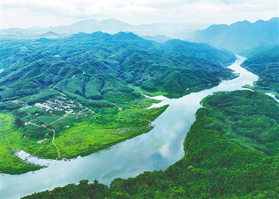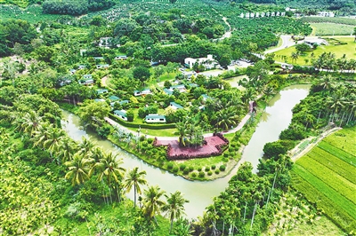 俯瞰宁远河流经三亚市育才生态区那会村。