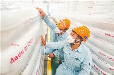 海南巴陵新材料公司工作人员检查产品,以满足出口需求。