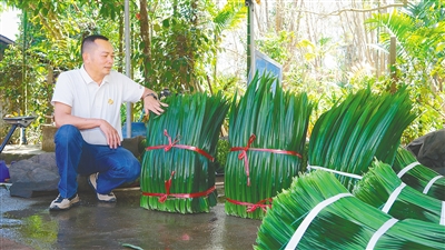 万宁斑兰产业致富带头人王有光清点打包好的斑兰叶。