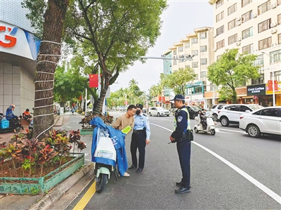 万宁交警对交通违法行为及时劝导、教育和纠正。赖建华 摄