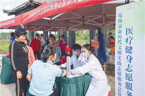琼海市结合新时代文明实践活动,向群众提供义诊服务。(资料图)