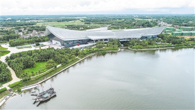 俯瞰位于潭门镇的中国(海南)南海博物馆。 海南日报全媒体记者 张茂 摄