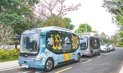 ④行驶在琼海博鳌东屿岛的无人驾驶巴士。(资料图)