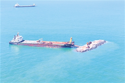 临高金牌港开发区港口一期工程水上施工现场。