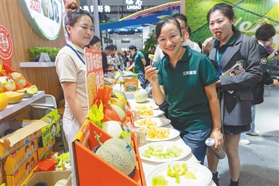 2025年冬交会上,客商在乐东馆品鉴农产品。