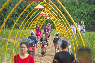 作为海南黎族文化发祥地之一,白沙孕育了双面绣、老古舞等8项国家及省级非遗,坐拥“中国黎族双面绣之乡”等美誉。依托深厚文化底蕴与“山的世界、水的源头”的生态禀赋,白沙沿环热带雨林国家公园旅游公路打造特色村寨,建成山兰稻作文化公园、民俗博物馆等体验区,让传统婚俗、鱼茶肉茶等非遗在保护中传承。