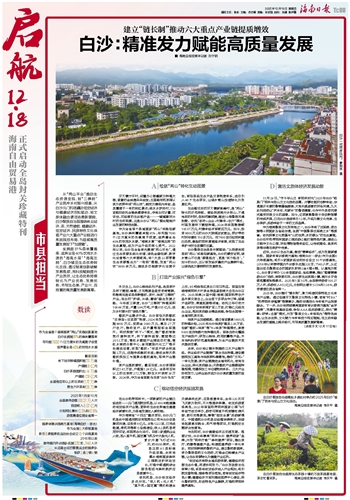 ■ 海南日报全媒体记者 刘宁玥从“两山平台”推动生态资源变现,到“三棵树” 产业筑牢乡村振兴根基;从白沙元门机场撬动低空经济与健康经济双轮驱动,到文旅体融合激活消费新潜能,白沙黎族自治县围绕林业经济、茶、天然橡胶、健康经济、低空经济、民族特色文化体育产业六大重点产业链进行系统规划布局,为县域高质量发展按下“加速键”。
